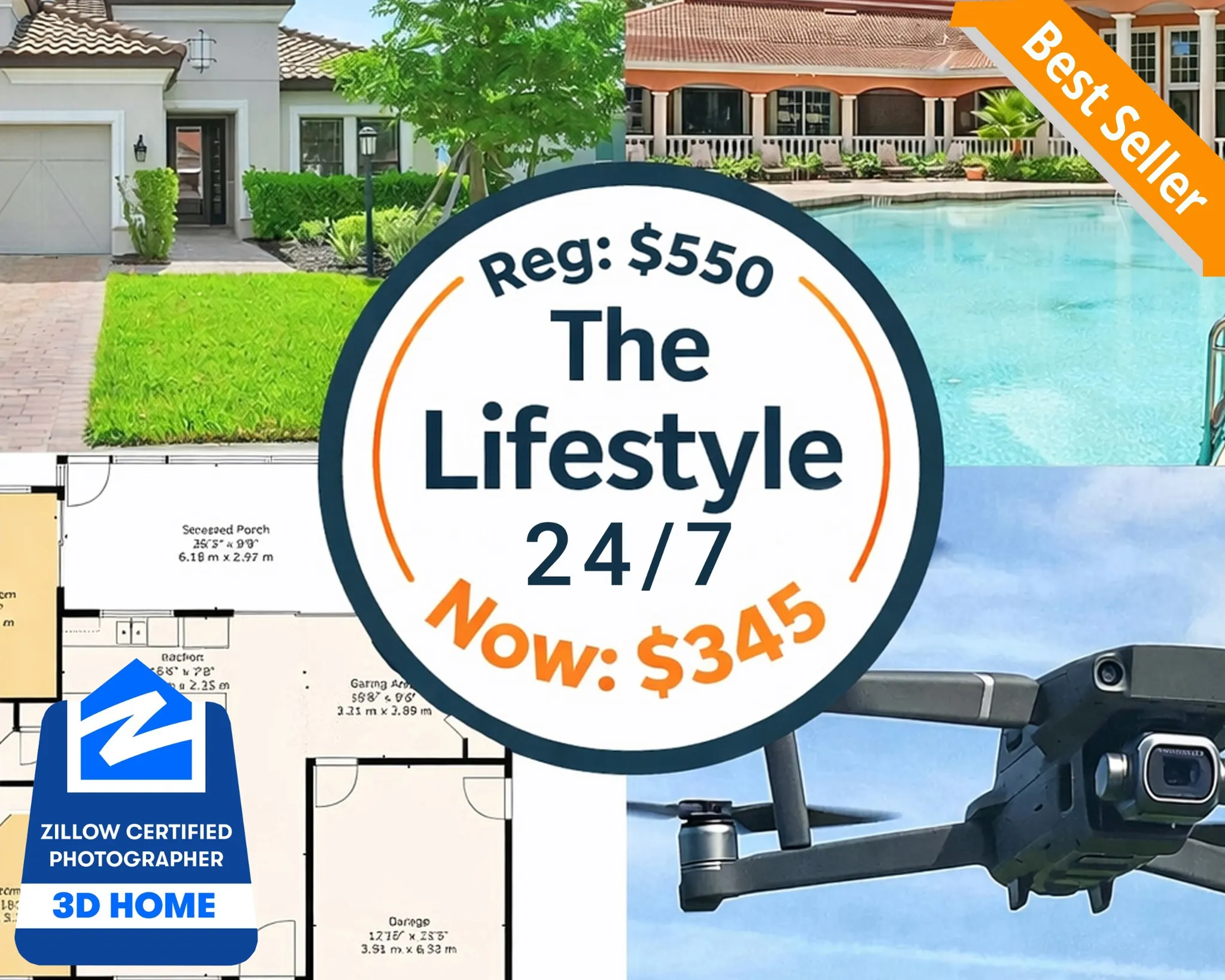 The Lifestyle 24/7 Modern real estate is decided online first. The Lifestyle 24/7 package combines immersive lifestyle photography with precise spatial insight so buyers and guests do not just look, they self-qualify, stay longer, inquire faster, and convert. It is built for Realtors and Vacation Rentals that treat media as an investment, not decoration. The Lifestyle 24/7 includes: - Unlimited interior and exterior photography - Drone aerial coverage - Community and amenity images - Color-coded 2D floor plan with measurements - MLS-ready property website - Premium editing on every image - Professional 4K Zillow 3D Home Tour & Interactive floor plan Everything is designed to show the lifestyle, not just the rooms, while giving viewers the clarity they need to take action. Your open house runs 24/7. If the property is not inside a community with shared amenities, or if amenity photos are not relevant, we simply replace the 10 amenity images with 10 close-up detail shots that highlight finishes, styling, and design features, so you never lose value in the package. Simple pricing by size Up to 2,000 sq ft: $345 2,001 to 3,000 sq ft: $370 3,001 to 4,500 sq ft: $420 4,501 to 6,000 sq ft: $490 The value is disproportionate. On its own, a Zillow 3D Tour often costs $150 to $350 when done professionally with 4K 360 cameras, and the cost scales up with the square footage. In The Lifestyle 24/7, it costs $0. For a typical Suncoast home, that is $100 to $300+ in savings. Price is not the key variable here. Return is. For context, The Lifestyle 24/7 is a strategic upgrade from The Essentials. For only $95 more, you unlock an FAA-certified and insured drone operator ($150 value), a professional Zillow 4K 3D Home Tour (minimum $100 value), plus 10 amenity images ($25 value). That is $150 + $100 + $25 = $275 in real, quantifiable services inside a $95 upgrade. You receive $275 of added marketing power for $95, keeping $180 in your pocket. Numbers do not lie. This is not just a nicer package. It is the smartest deal on the Suncoast.